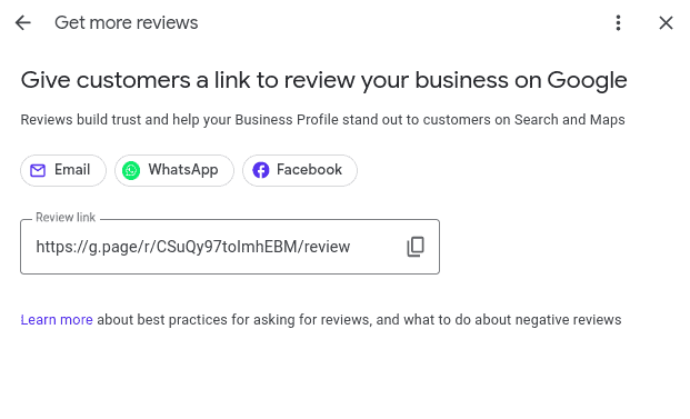 Jika Anda ingin meminta Google Review, maka berikan link ke customer untuk memudahkan.