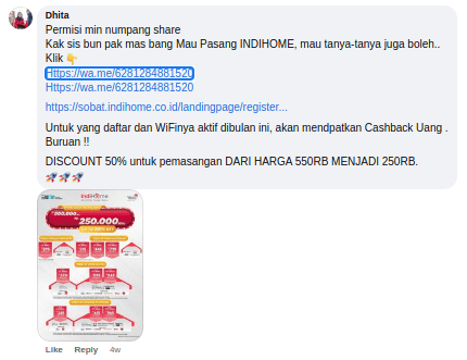 Sebaiknya tidak melakukan spamming, di mana kita membanjiri bagian komen / kotak DM dengan membagikan link.