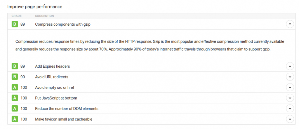 - Page performance. Apabila ketiga cara di atas sudah dilakukan, namun load time masih di atas 4 detik, maka Anda dapat mencoba cara yang dianjurkan oleh Pingdom pada bagian Page performance. Saya menyarankan langkah ini terakhir karena banyak berhubungan dengan hal teknis.