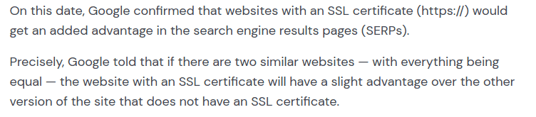 Sejak tahun 2018, Google menganjurkan semua website untuk menggunakan enkripsi HTTPS, dengan kata lain website membutuhkan sertifikat SSL (Secure Socket Layers).