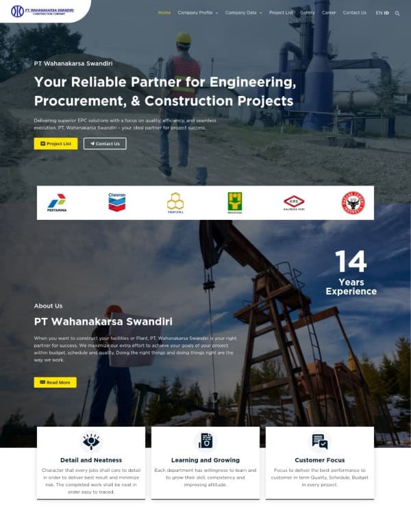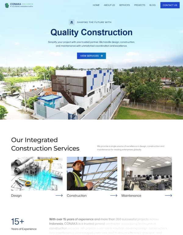 Tunjukkan kredibilitas dan profesionalisme perusahaan konstruksi Anda dengan website yang menarik, cepat akses, dan aman. Dilengkapi layanan full support dari tim profesional.
